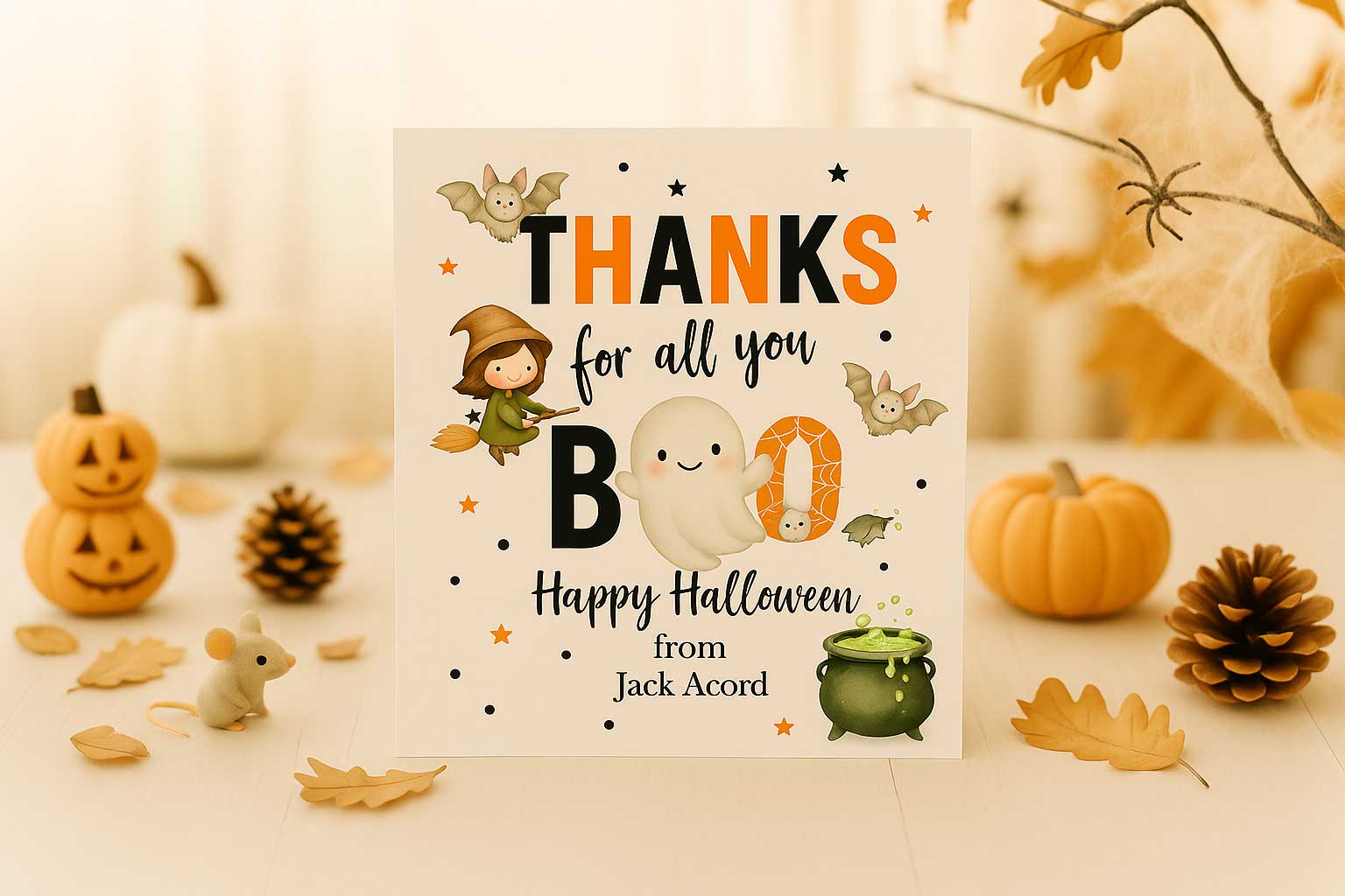 Halloween is just around the corner — and what better way to send spooky smiles than with  customisable Halloween card? Whether you’re sending a friendly “boo!” to your child’s classmates, greeting friends, or including a card with homemade treats, this printable card adds a