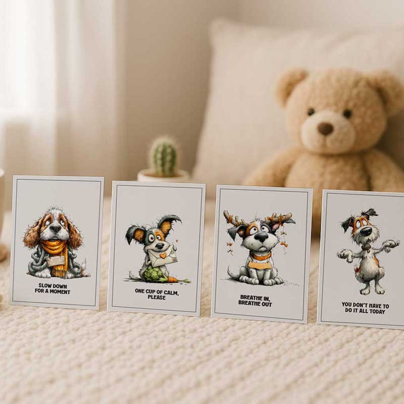 • Self Care Card Series – Create a Tiny Moment of Joy (12 Printable A6 Cards, Cute Dog Illustrations)