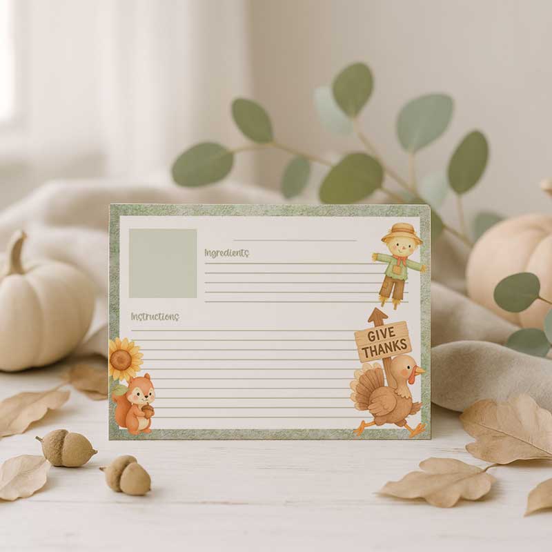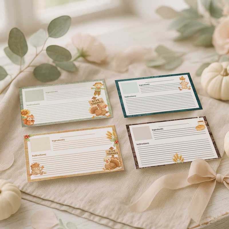 These Printable Thanksgiving Recipe Cards make a lovely addition to any kitchen — whether you’re hosting a holiday dinner, baking with your kids, or passing down family traditions.